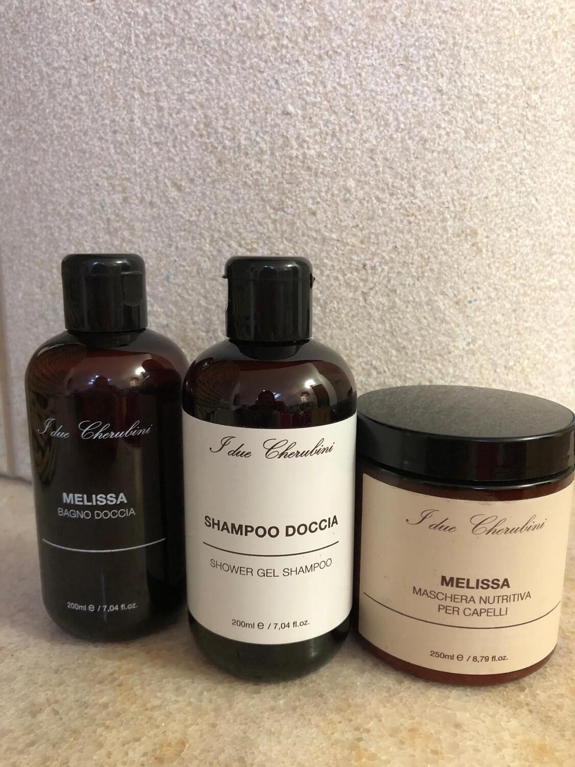 Combo per la cura dei capelli con Shampoo doccia, 2 in 1, delicato adatto a tutti i tipi di capelli, utile anche come coadiuvante nel trattamento della psoriasi, di desquamazione, forfora secca e grassa, prurito e/o infiammazione del cuoio capelluto grazie all'azione rinfrescante, antinfiammatoria e riequilibrante della Melissa officinalis in abbinamento alla Maschera Balsamo, da usare come districante post lavaggio sulle lunghezze e anche come maschera/impacco nutriente e ristrutturante per capelli secchi e sfibrati.